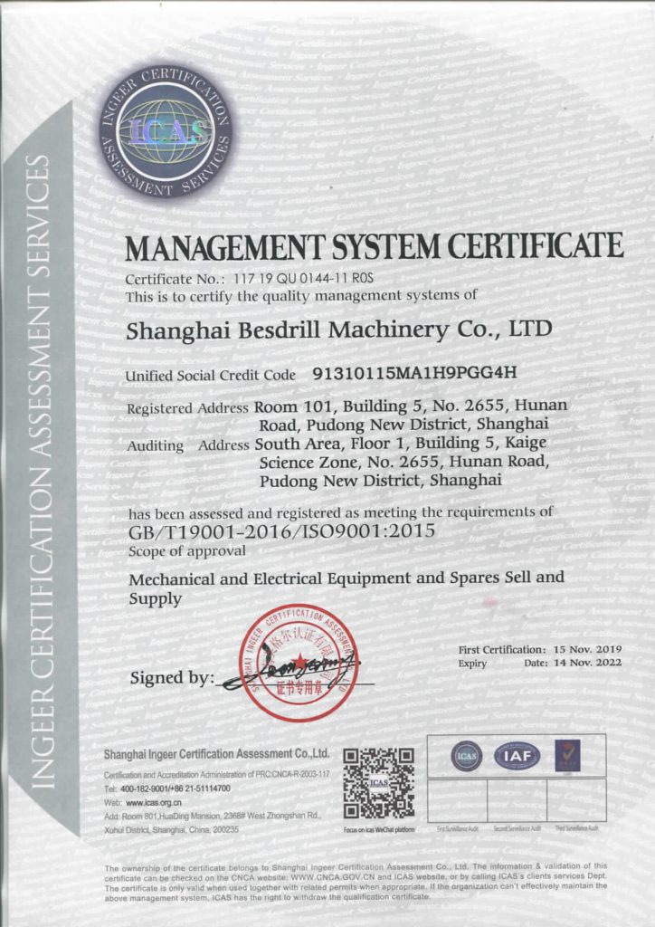 At the beginning of company establishment, we take part in the International Association of Drilling Contractors (IADC). The company now has more than 13 trademarks, 8 patents applied, 3 innovations applied, 5 utility models applied, 2 major equipment special projects applied in Henan Province, and 24 qualification documents possessed.